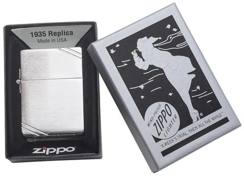 Зажигалка ZIPPO 1935 Replica Brushed Chrome 1935 от официального дилера Zippo в Тюмени. Вы можете дополнительно заказать гравировку, которая подчеркнет Вашу оригинальность и придаст памятность статусному подарку.